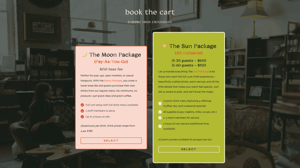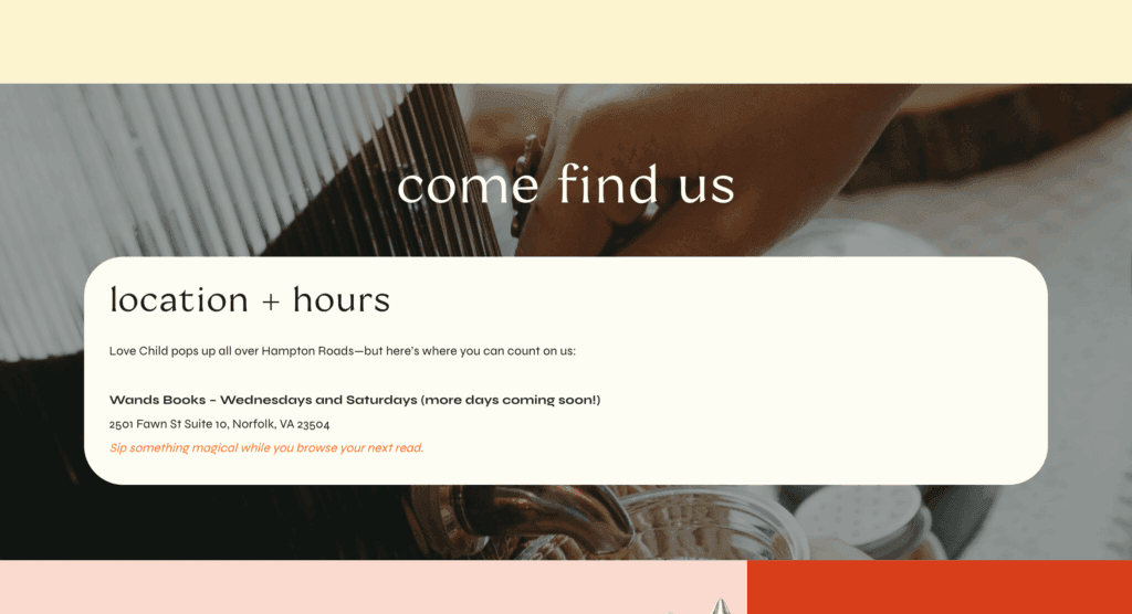 Love Child’s new website captures the vibrant, free-spirited energy of the café while making it effortless for guests to find what they need. It feels playful and welcoming, yet organized in a way that supports their growing vision.