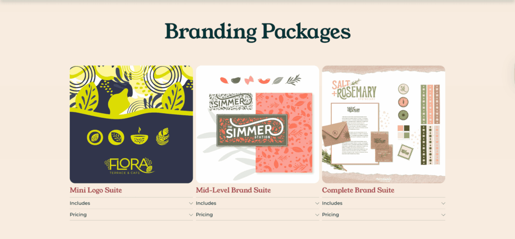 Amber from Mandowla Creative is my favorite brand designer, and people who like my style of websites LOVE her style of branding work. She is extremely talented at custom illustrated logo suites, font selections, social media templates, and brand guides.
